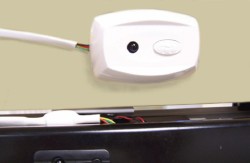 Hunter Douglas Duette PowerRise Retrofit Kit to Platinum Technology 2.0 PowerRise IR/RF Satellite Eye with 20" Cable Part#: 2980000203 - 20" Wire Platinum technology can be used to retrofit any PowerRise (TM) or PowerGlide (TM) lifting system made on or AFTER May 1, 2003. This includes Duette, Silhouette, Vignette, Brilliance PowerRise Systems and Luminette PowerGlide Tilt & Traverse systems. To retrofit an existing system, a new Platinum Technolgy remote, shown above, and the NEW IR/RF Satellite Eye, shown at right are added to the system. The new remote may be used to operate ALL existing PowerRise and PowerGlide window coverings. One new satellite eye per blind will be needed. This sort of retrofit is not available for horizontal blinds with the PowerTilt system. To find out when your system was made: Remove the blind from the window. Look in or on the headrail for a white, pink or blue production sticker. Find the production date on the sticker. |
